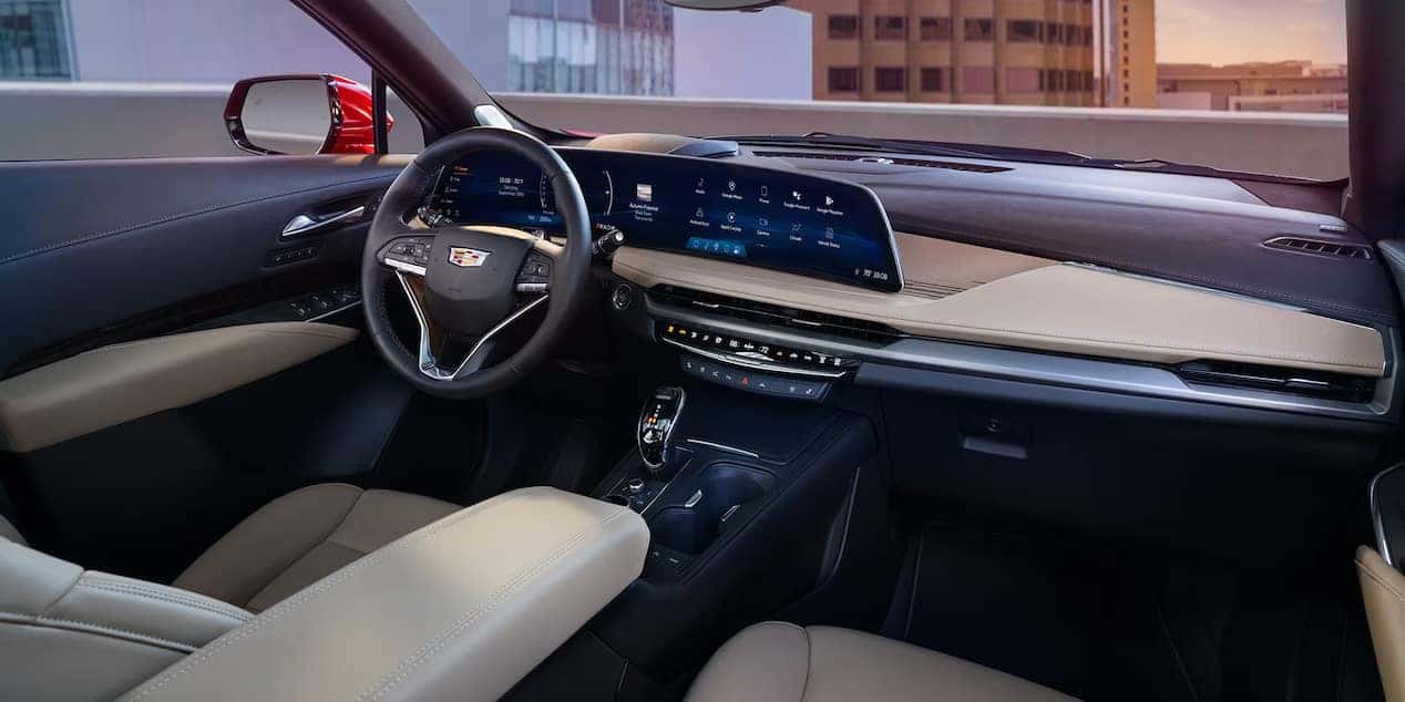 The interior of the 2024 XT4 embodies a forward-thinking ambiance, taking design cues from the Cadillac LYRIQ. Anchoring the space is a striking 33-inch-diagonal LED display boasting an impressive 9K resolution. This interface acts as the centerpiece for the vehicle’s infotainment and connectivity features. Different trims offer a variety of interior decor options, including Piano Black appointments, genuine wood or aluminum, and carbon fiber. These selections are contingent upon the trim level and color combination, allowing for customization. Additional technological advancements, such as 5G Wi-Fi hotspot capability and an optional AKG 13-speaker audio system, further enhance the appeal of the XT4. Beyond aesthetics, the interior design prioritizes user comfort and functionality. The sweeping LED display curving towards the driver provides an immersive and intuitive experience. Additionally, the contemporary embroidery patterns on the seats contribute to a luxurious feel and ergonomic comfort. The range of trim options ensures that interior design caters to diverse tastes and preferences, elevating the overall driving experience.